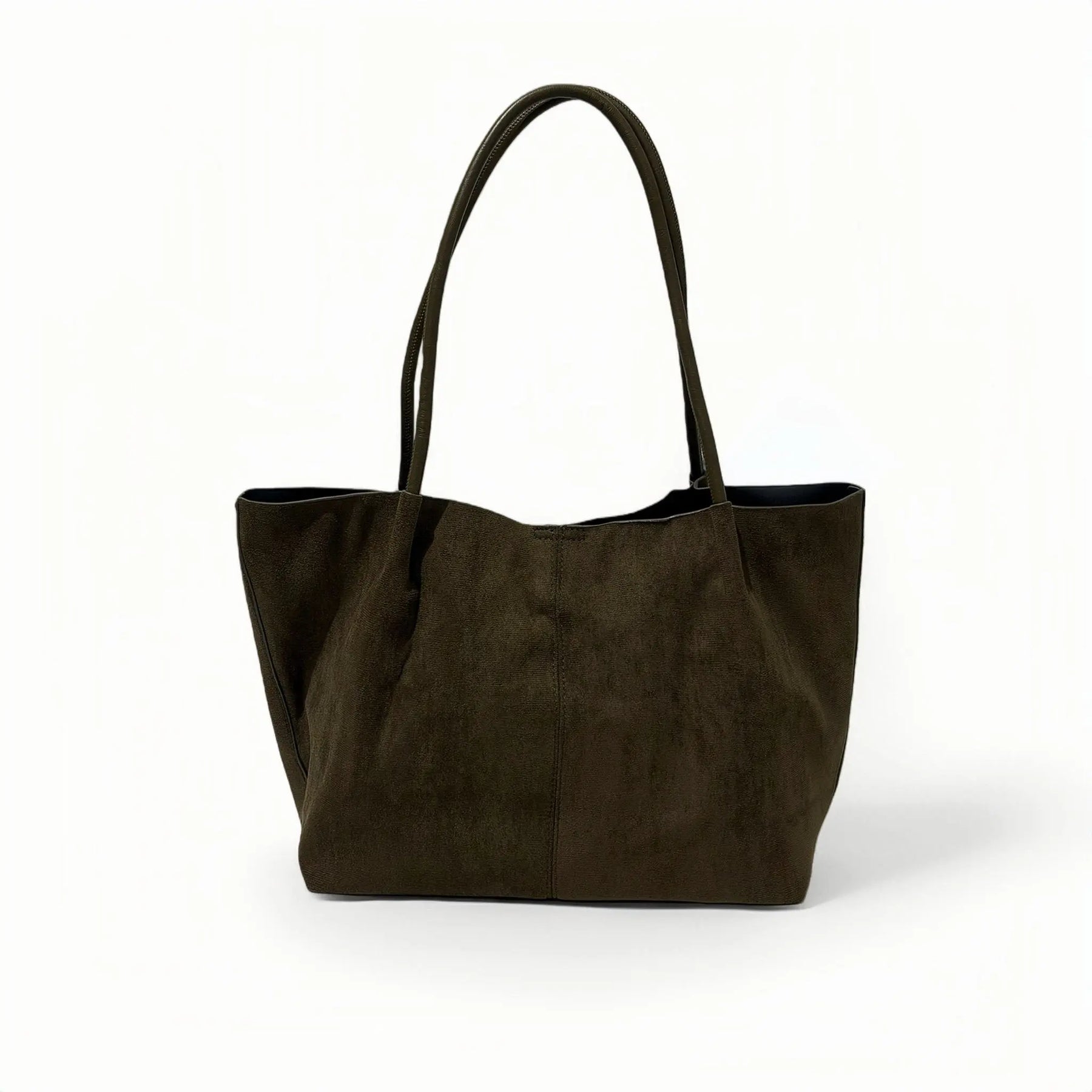 An image of a  Olive Green TF7016 Suede Tote Bag with Pouch by  Mirra Masa