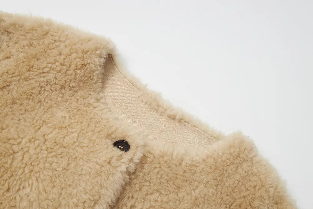 44230 Luxe Wool Round-Neck Teddy Jacket