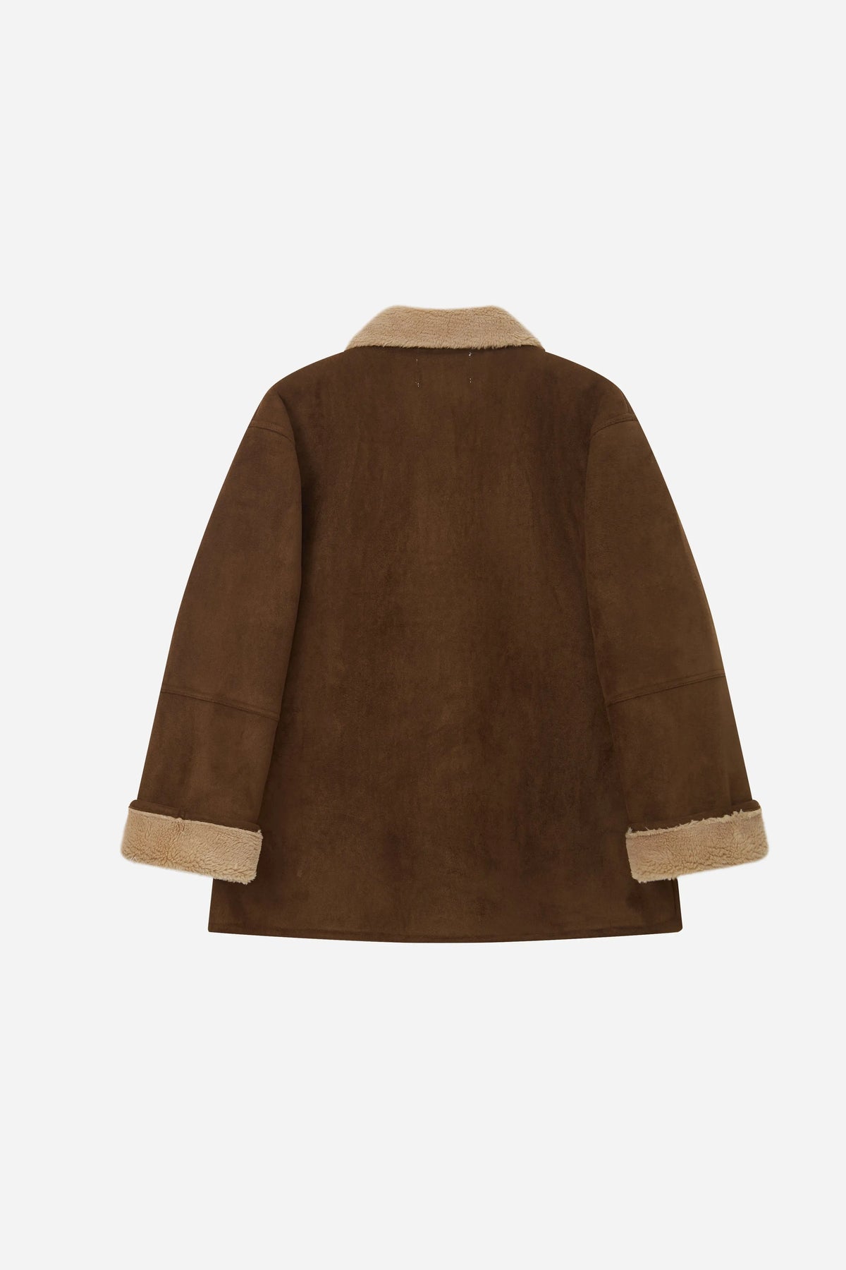 An image of a   S41779 Suede Shearling Lined Jacket by  Mirra Masa