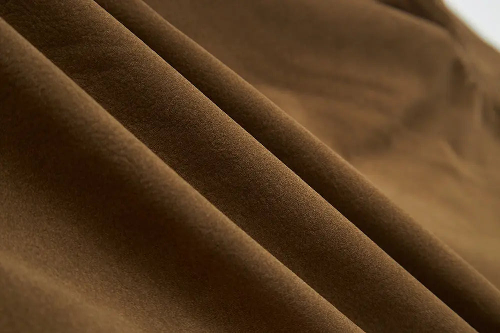 Combining durability with everyday comfort, this Khaki Suede Chore Jacket is a versatile outer layer for the transition seasons. The shell is crafted from 100% Polyurethane with a rich, soft suede-like finish that adds texture to any outfit. Unlike stiff synthetic jackets, this piece features a premium 100% Viscose lining, ensuring it feels cool and breathable against your skin. Practical details include large patch pockets, a structured collar, and button-tab cuffs for an adjustable fit.
