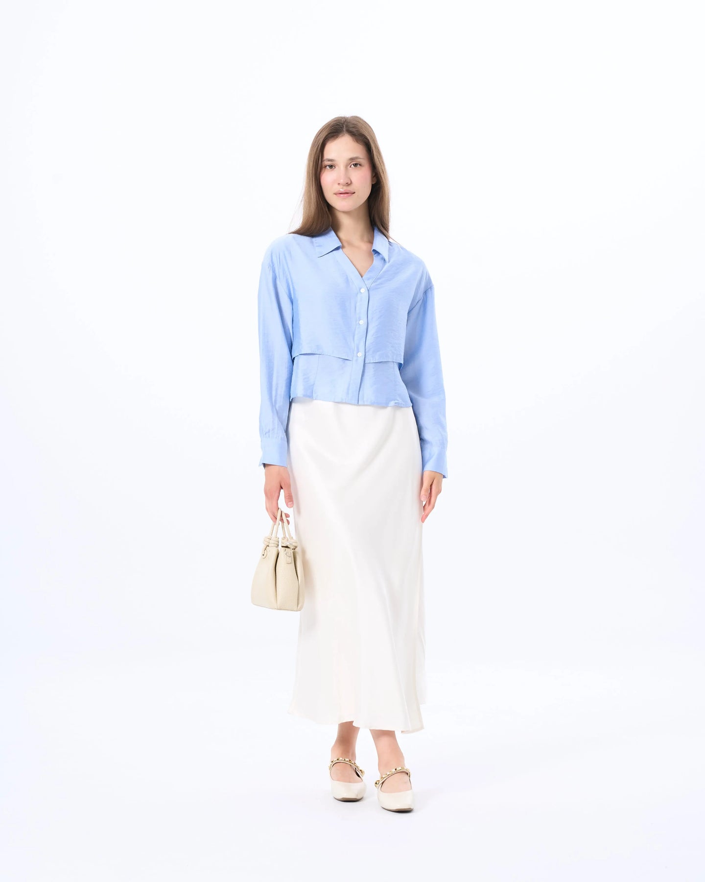 An image of a   BLD03M6 Cropped Tencel Overshirt by  Mirra Masa