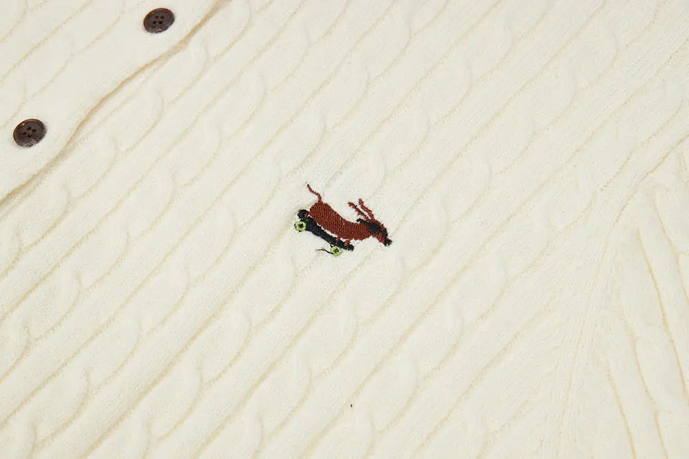 An image of a  White / One-Size 31308 Cable Knit Cardigan by  Mirra Masa
